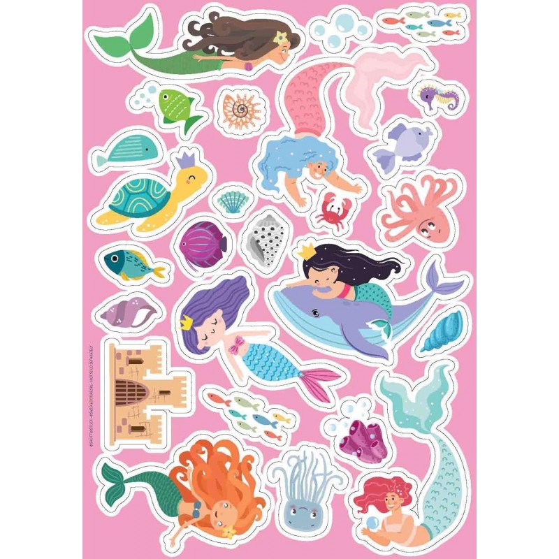 Lis le livre de 16 pages et amuse-toi à réaliser les activités proposées. 100 stickers, 200 décalcomanies à sec et un stylo spécial décalquage pour compléter et colorier comme bon te semble les quatre décors du monde des sirènes ! Un livre d’activités comprenant des coloriages, des stickers, des images à décalquer et des travaux manuels pour stimuler l’apprentissage et la coordination des tout-petits.
