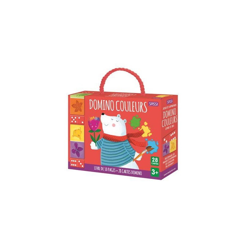 Reconnais les images et apprends les couleurs en jouant ! Un livre de 10 pages et 28 grandes cartes domino pour dévellopper la motricité fine, stimuler l’apprentissage et favoriser la concentration. Reconnais les images et apprends les couleurs en jouant !